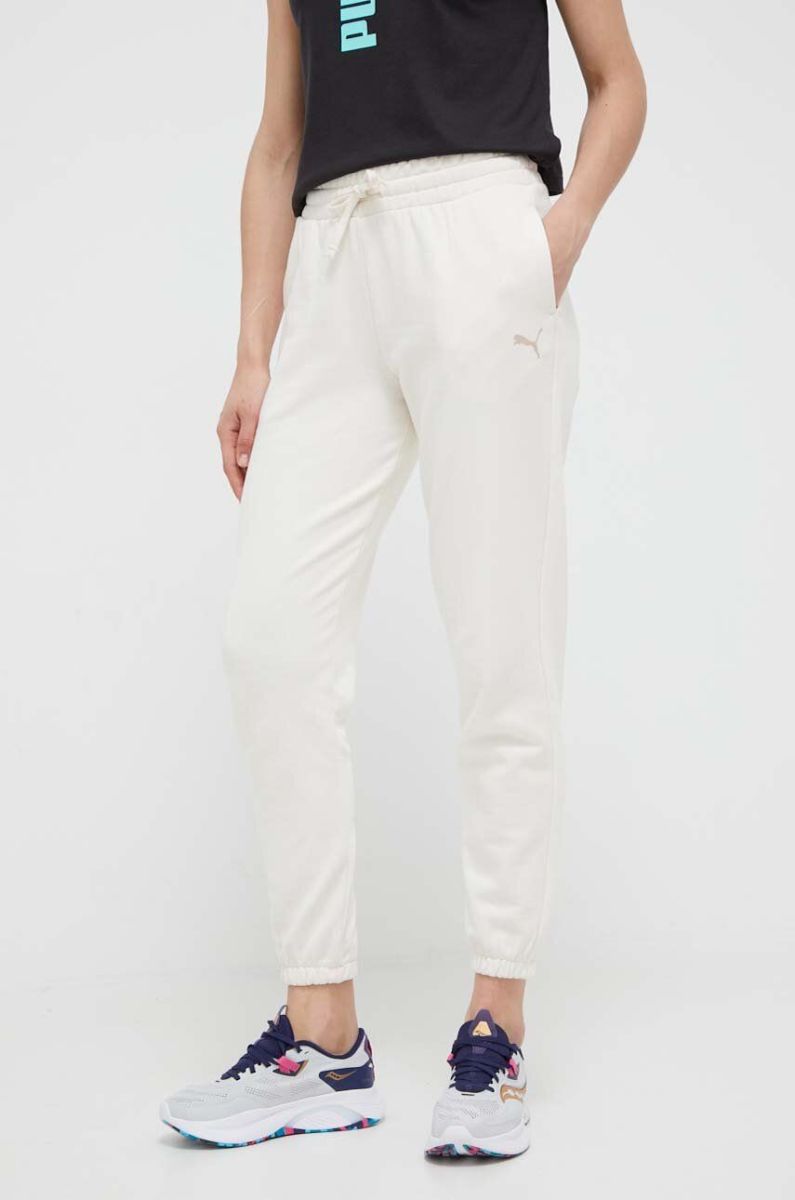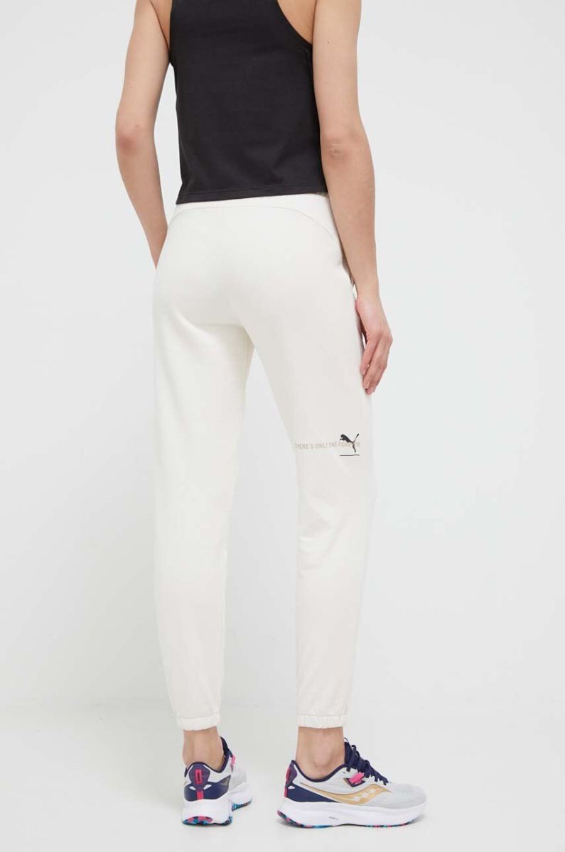 Бавовняні спортивні штани Puma колір бежевий однотонні